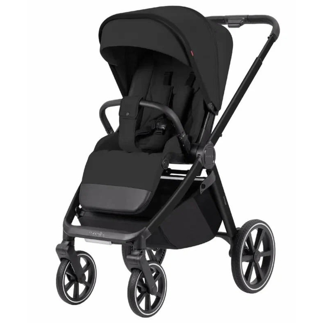 - Пятиточечные, регулируемые ремни безопасности со светоотражателями, поворотный бампер и паховый ремень обеспечат должную безопасность ребёнку.
